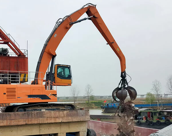 Двухстворчатая конструкция с гидравлическим приводом имитирует открытие и закрытие ковша, создавая герметичное пространство в закрытом состоянии. Он надежно удерживает сыпучие материалы, такие как песок, гравий и руда, значительно снижая потери при транспортировке. В таких областях применения, как погрузка грузовиков на шахтах и разгрузка судов в портах, гибкие углы открытия и закрытия грейферного ковша позволяют точно захватывать материалы различных размеров, что делает его особенно подходящим для работы с сыпучими материалами, которые трудно собрать ковшом.